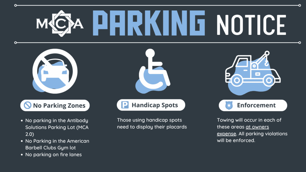 Please note: Cameras now monitor all areas, and MCA Security will report and share footage of any reckless driving or illegal parking with SCPD. Vehicles in violation may be towed.