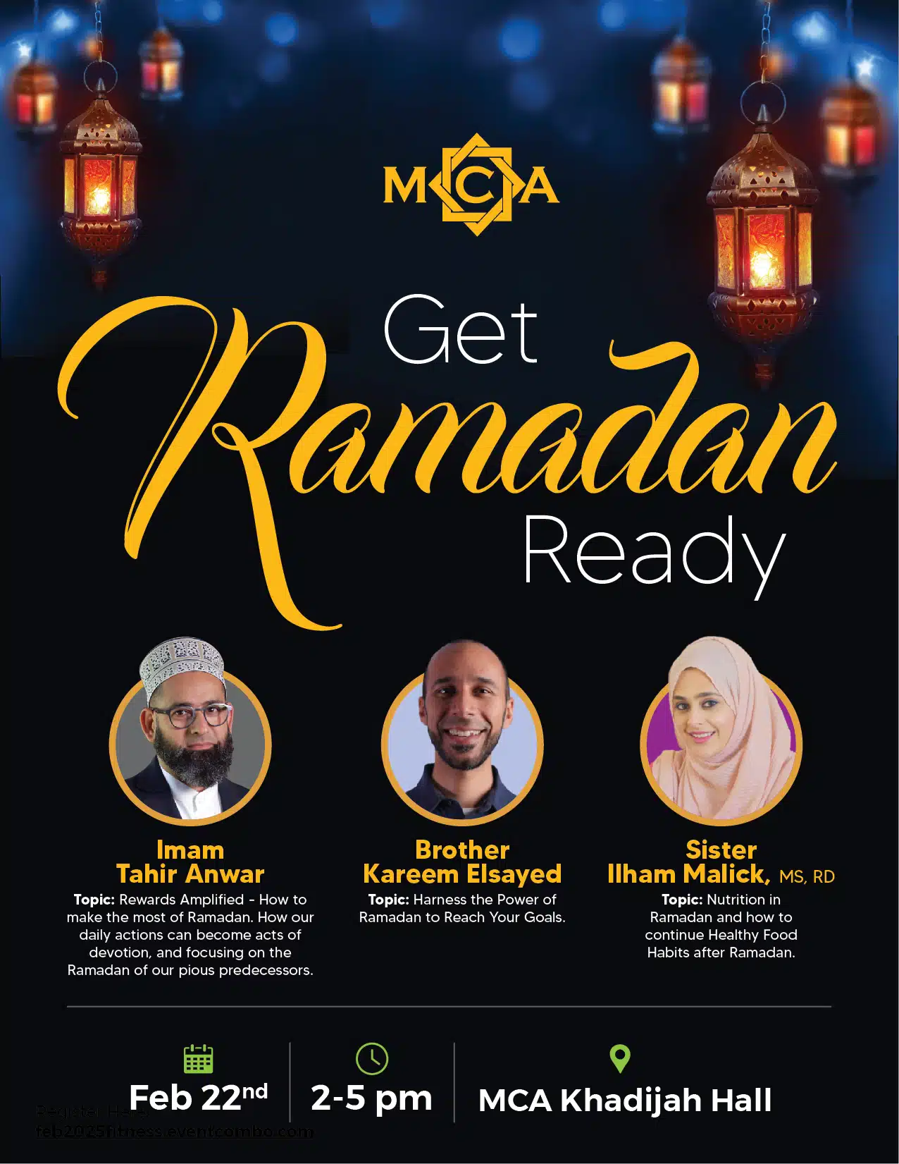 Join us for Get Ramadan Ready, a special gathering designed to help you spiritually, mentally, and practically prepare for Ramadan. Learn from inspiring speakers who will provide guidance on making the most of this sacred time: