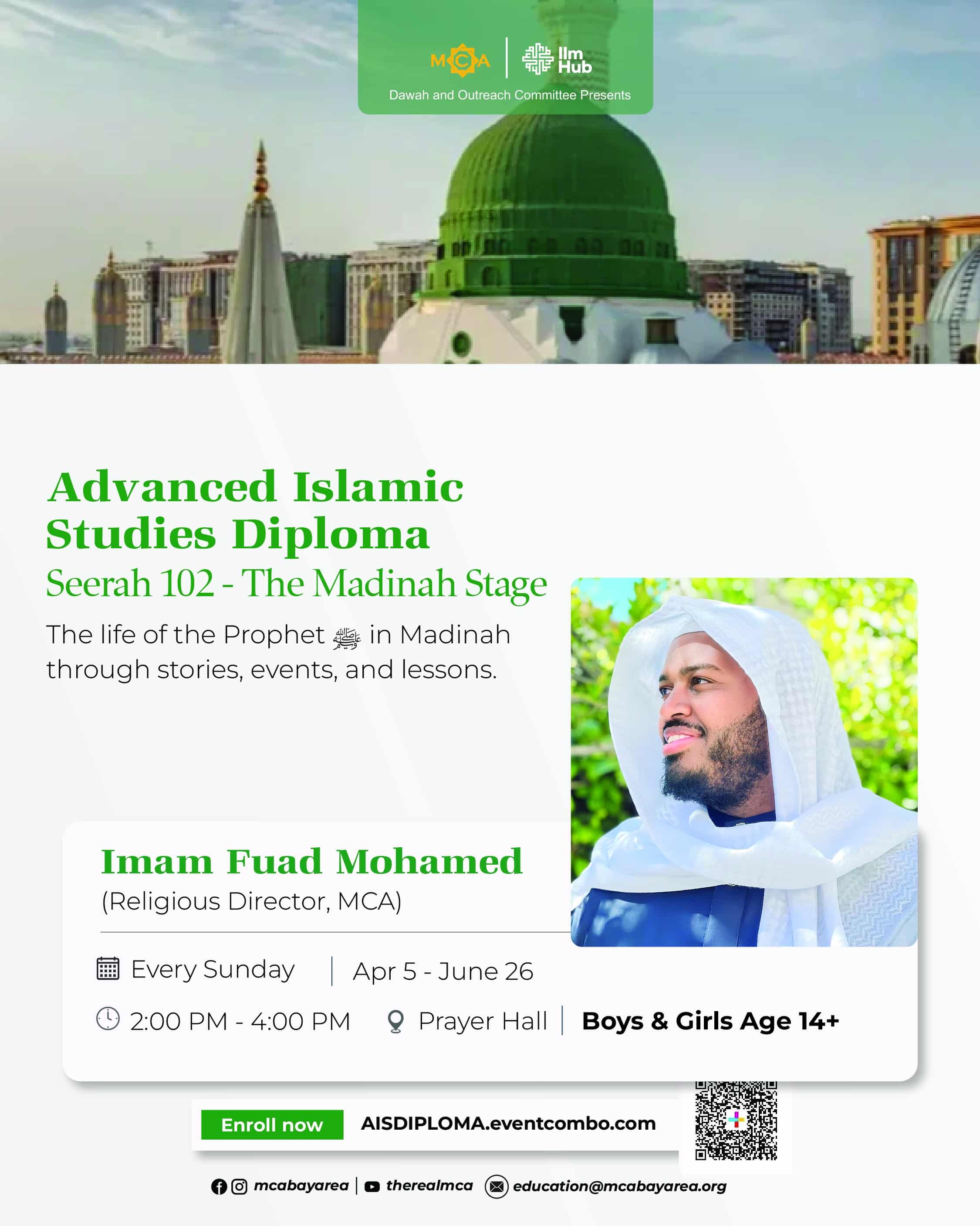 MCA is pleased to offer a comprehensive Advanced Islamic Studies Diploma led by Imam Fuad Mohamed, designed to provide a structured and holistic understanding of Islam for students ages 14 and above.