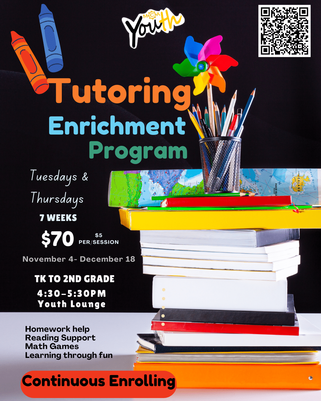 Join us for a fun and supportive Tutoring & Enrichment Program at MCA designed for students in TK–2nd grade! Our program offers homework help, reading support, enrichment activities, and math games—all while making learning enjoyable and engaging.